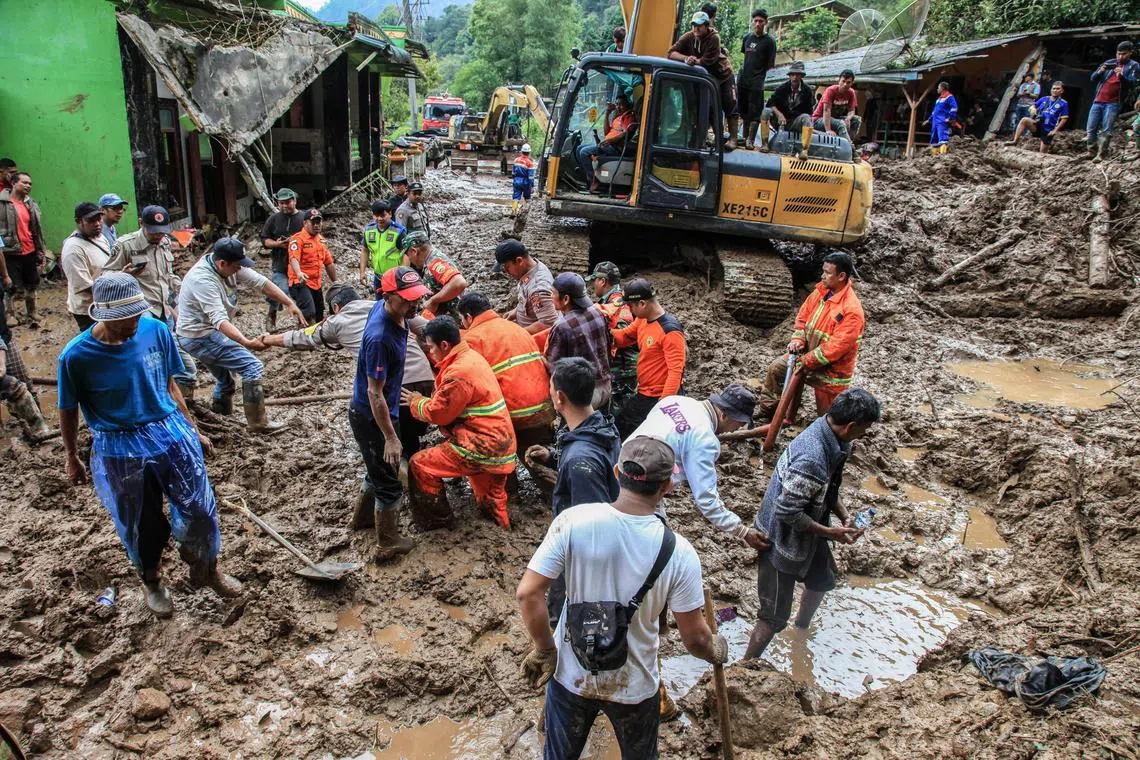 Kejadian tanah runtuh di kampung Semangat Gunung di Karo, Provinsi Sumatera Utara, Indonesia, pada 25 November. Sekurang-kurangnya sembilan orang terbunuh, dan seorang penduduk kampung dilaporkan hilang. - Foto EPA-EFE