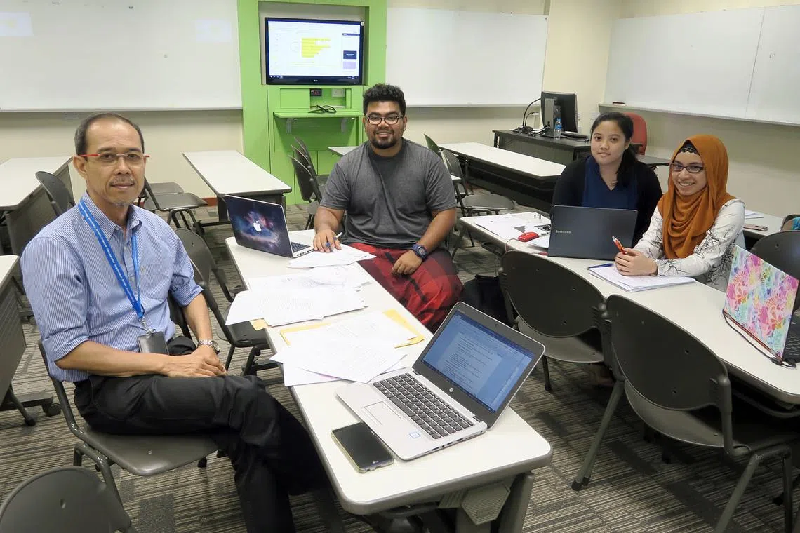 KONGSI HASIL KAJIAN: (Dari kiri) Dr Mukhlis Abu Bakar menjalankan kajian tentang identiti dwi dan tiga bahasa bersama pasukan mahasiswa yang antara lain terdiri daripada Encik Ariff Rizwan Sahab, Cik Nur Liyana Osman dan Cik Nurazilah Mohamed Shukor. - Foto NAZRY MOKHTAR -