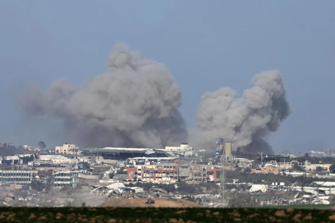 SUSAH SENANG PERMAINAN HIDUP: Asap mengepul dari kejiranan Shujaiya di Semenanjung Gaza, berikutan serangan udara Israel pada 29 Disember 2023, di ambang tahun baru 2024. Keadaan susah dan tidak menentu yang melanda dunia datang ‘bertali arus’, ibarat ‘sudah bertarah, berdongkol pula’. - Foto EPA-EFE