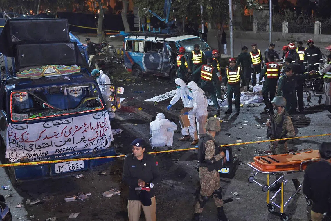 LAHORE (Pakistan): Sekurang-kurangnya 15 orang terkorban dan 82 yang lain cedera dalam insiden serangan bunuh diri yang dipercayai dilancarkan oleh kumpulan Taleban, dalam satu perhimpunan tunjuk perasaan di Lahore kelmarin.