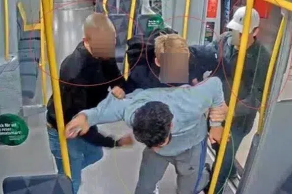 Tiga daripada empat penyerang itu kemudian memukul seorang lelaki di dalam kereta api bawah tanah.