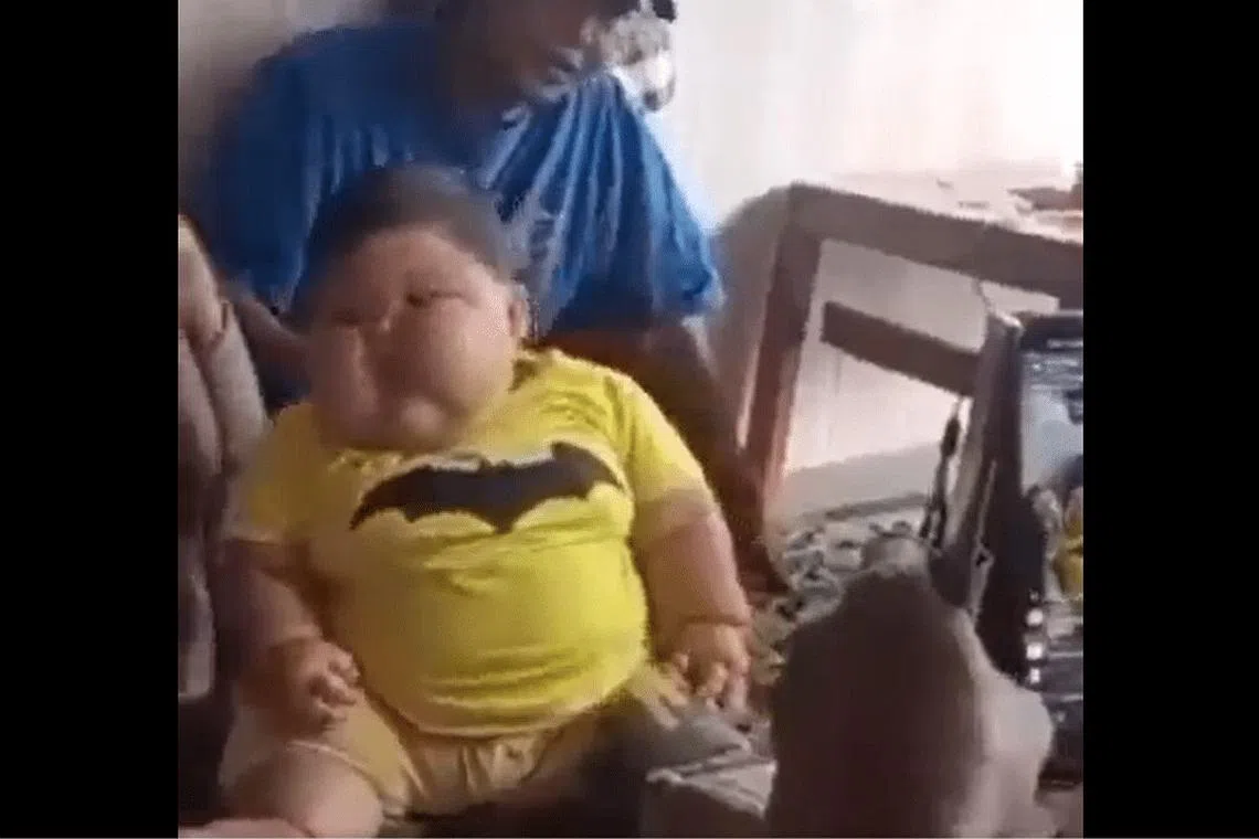 SEORANG bayi berusia 16 bulan di Indonesia bukan sahaja perlu memakai lampin saiz XXXL tetapi juga perlu memakai pakaian ayahnya.