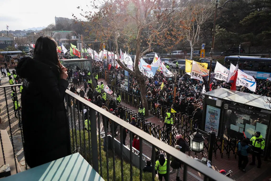 Ratusan penyokong Encik Yoon berkumpul sejak awal pagi di luar kediaman presiden, berikrar untuk menghalang penahanan beliau.