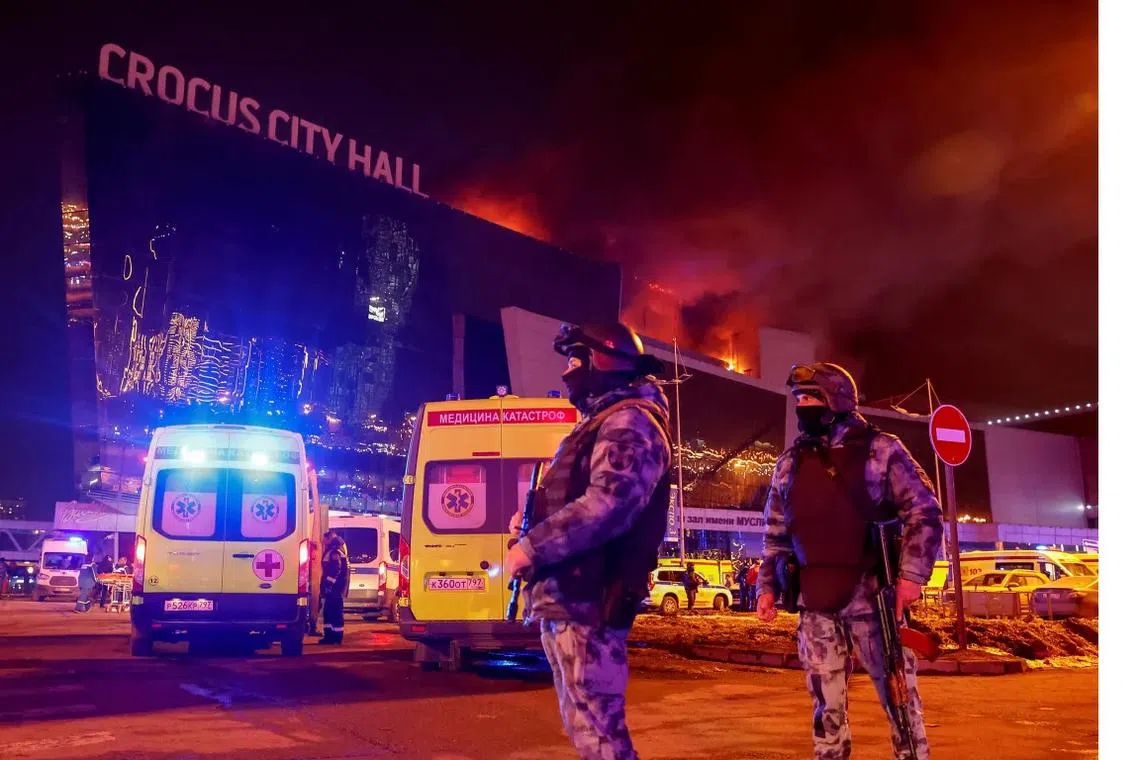 Pasukan SWAT telah dikerahkan ke kawasan itu, dan lebih 70 pasukan ambulans dan doktor telah membantu mangsa. Kebakaran besar di Crocus City menyebabkan sebahagian bumbung dewan itu runtuh.