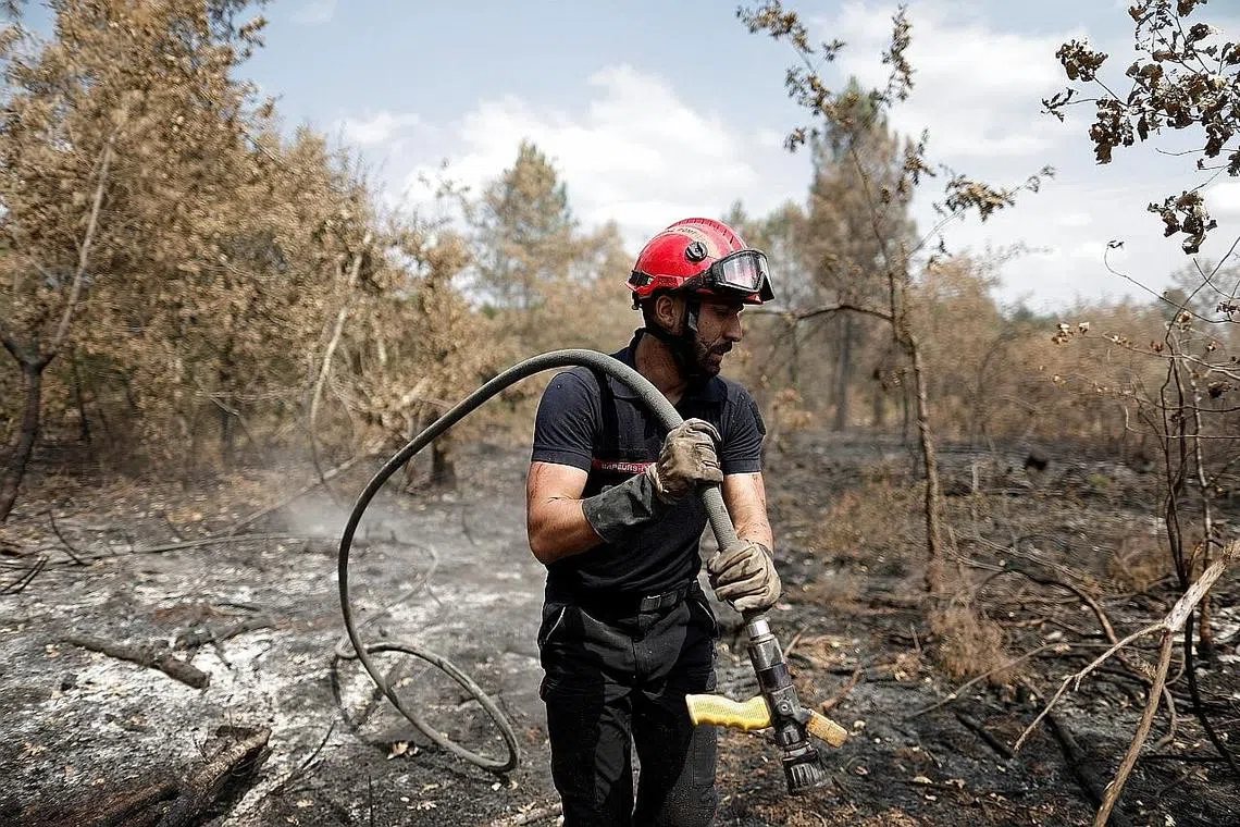 Sementara itu di Rome, Italy berdepan cuaca panas dengan amaran gelombang haba dikeluarkan di 16 bandar di seluruh negara, ketika anggota bomba berusaha memadamkan kebakaran.