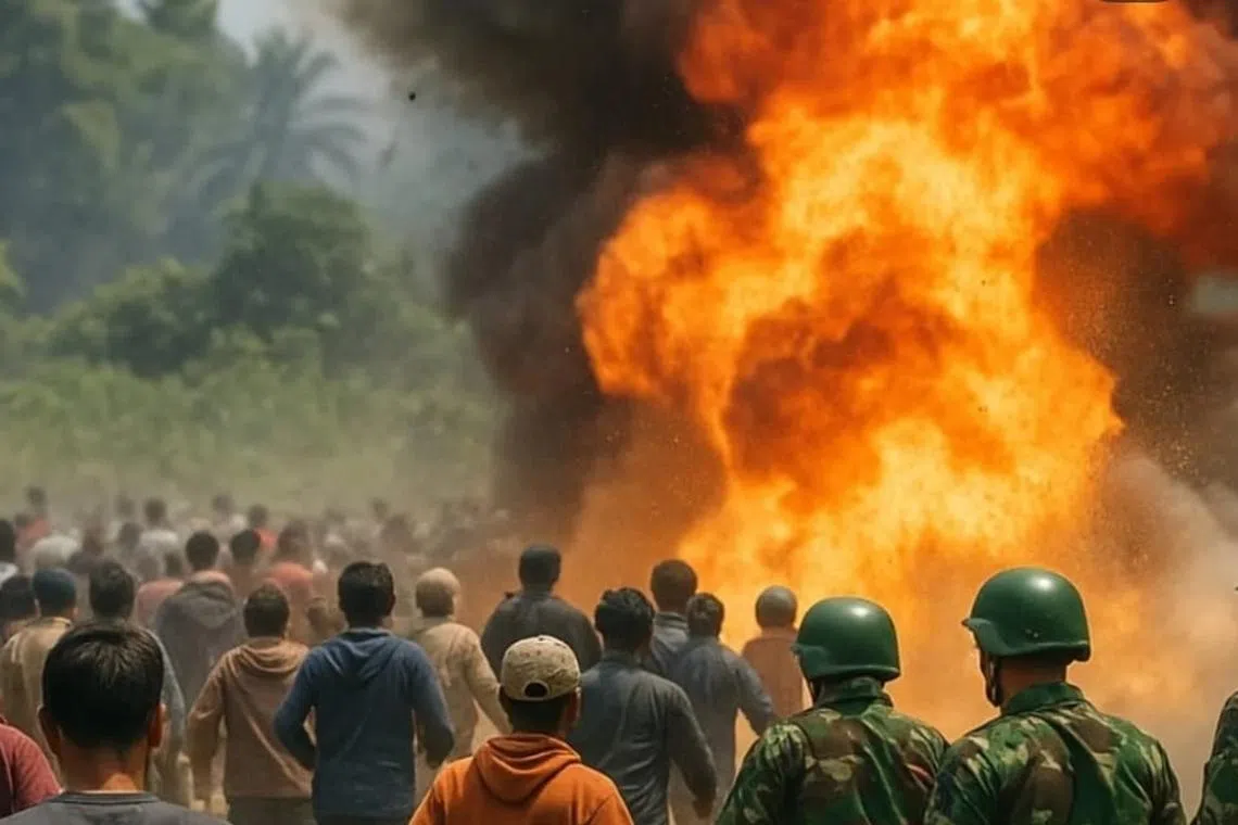 Rakaman yang disiarkan melalui saluran televisyen nasional menunjukkan asap hitam tebal berkepul-kepul naik dari lokasi letupan di tengah-tengah tanah lapang, diikuti letupan kedua.