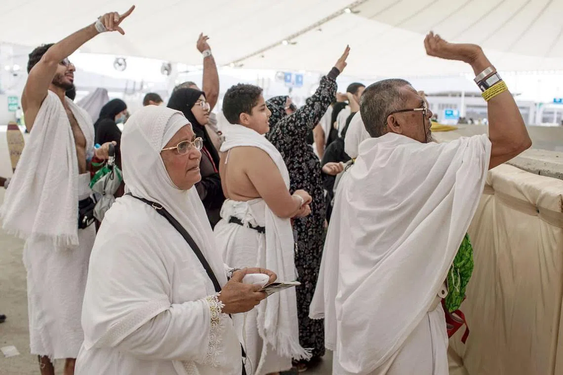 Jemaah yang sedang menjalankan ibadah tersebut menyeberangi lembah Mina di kawasan barat Makkah, dengan ramai yang membawa batu kecil dalam botol plastik.