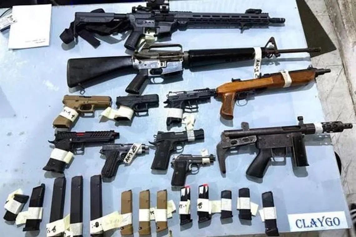 Antara 10 senjata api yang dirampas daripada tiga lelaki itu adalah empat senapang M-15, senapang kecil MK-9, senapang 9 milimeter MKG, dan enam pistol.
