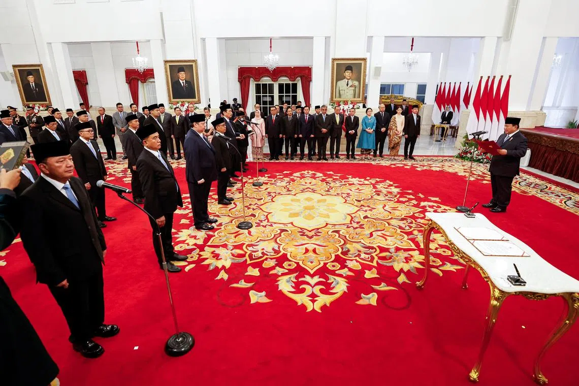 JAKARTA: Presiden baru Indonesia, Encik Prabowo Subianto, melantik Kabinet beliau dalam satu majlis penuh simbolik di Istana Negara, Jakarta, pada 21 Oktober.