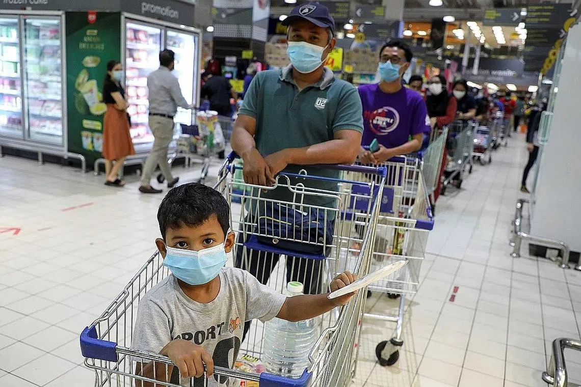 SEDIA HADAPI SEKATAN PERGERAKAN: Penduduk di Subang Jaya membanjiri pasar raya bagi mendapatkan barangan keperluan harian Isnin lalu selepas kerajaan Malaysia melaksanakan Perintah Kawalan Pergerakan Bersyarat (PKPB) di Kuala Lumpur, Putrajaya dan Selangor yang berlangsung selama 14 hari mulai semalam. - Foto REUTERS -