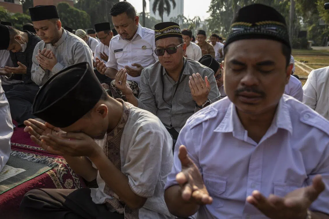 Ratusan penduduk dilaporkan turut melakukan solat memohon agar hujan turun di beberapa bandar yang dilanda jerebu pada Khamis ketika kebakaran hutan berlaku pada musim kering.