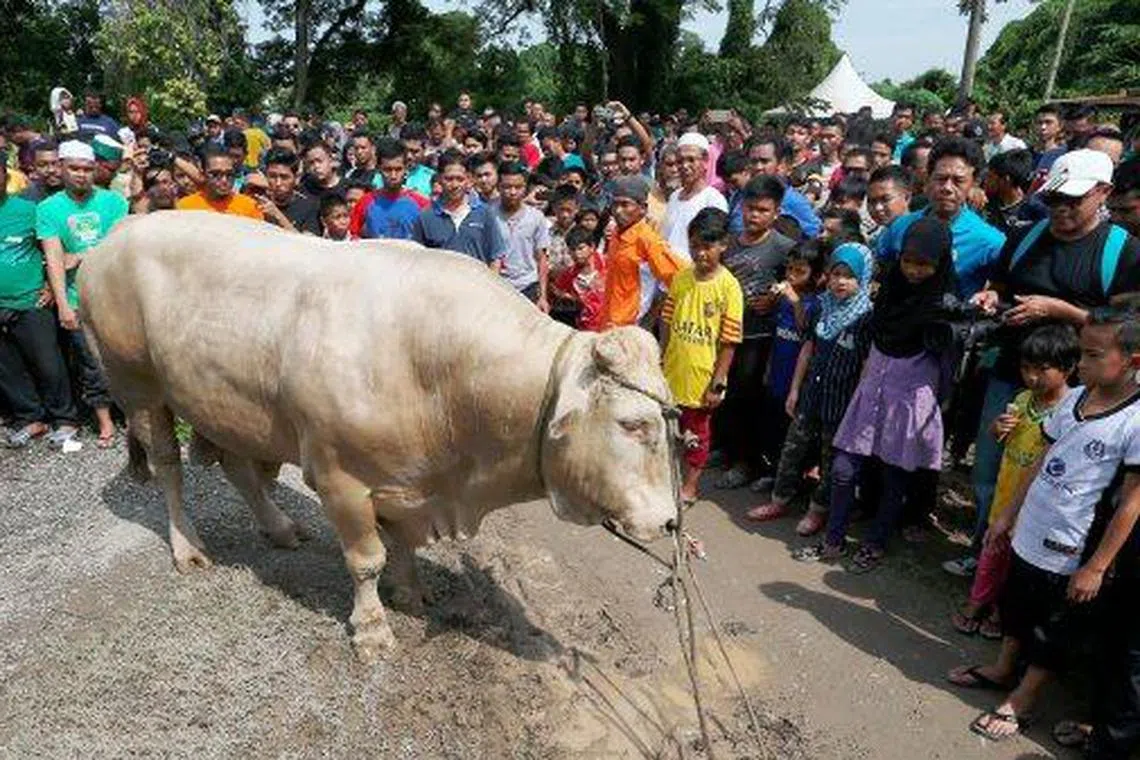HAIWAN KORBAN: Para penduduk menyaksikan acara korban di sebuah kampung di Terengganu sempena Aidiladha. - Foto NSTP