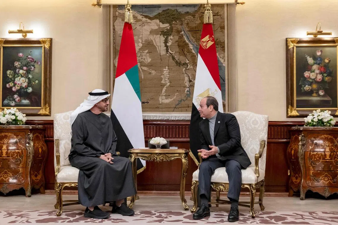 Pertemuan Encik Al Nahyan dengan Presiden Mesir Encik Abdel Fattah al-Sisi di Kahirah dilaporkan sebagai sebahagian daripada tekanan berterusan Washington terhadap Mesir agar menerima pemindahan penduduk Palestin ke Sinai, yang bersempadan dengan Gaza dan selatan Israel.