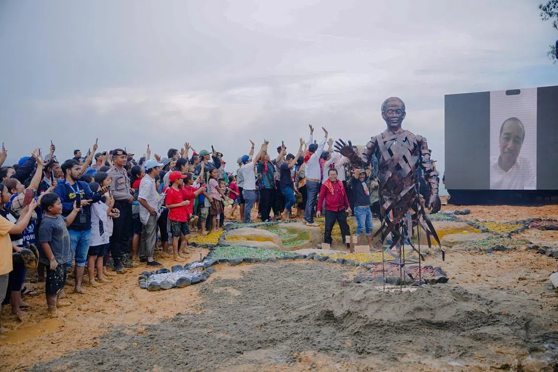 Encik Adil berkata patung Encik Jokowi itu sebagai bentuk kesyukuran terhadap program pembaikan jalan raya presiden di rantau ini.