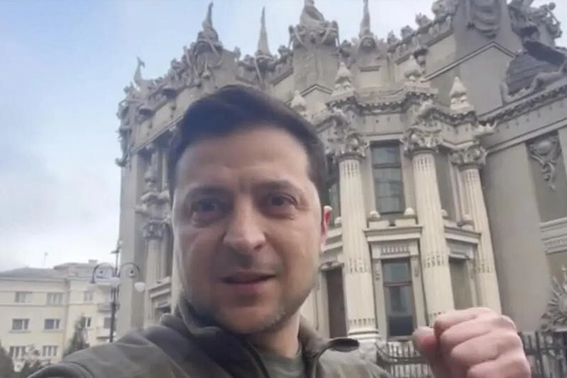 KYIV: Selepas tentera Ukraine menyatakan mereka telah menangkis serangan Russia ke atas ibu kita mereka pada Sabtu (26 Feb), presiden negara itu, Encik Volodymyr Zelensky, merakam satu video swafoto melahirkan ikrar untuk kekal di bandar itu dan terus berjuang. "Saya di sini. Kami tidak akan meletakkan sebarang senjata. "Kami akan mempertahankan negara kami, kerana senjata kami adalah kebenaran kami," isytiharnya, sambil mengecam dakwaan bahawa beliau telah menyerah diri atau melarikan diri. "Banyak maklumat palsu telah muncul di Internet mengatakan saya dikatakan menyeru tentera kami untuk meletak senjata dan pemindahan keluar sedang dijalankan," katanya di luar pejabatnya.