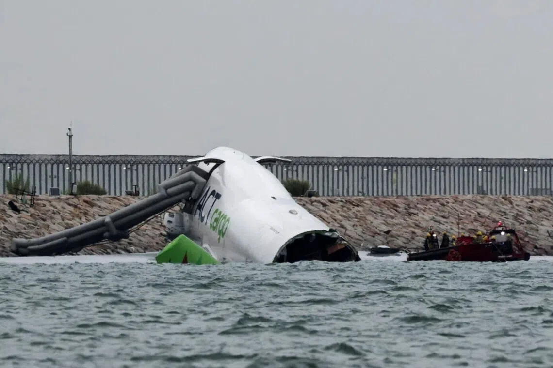 Pesawat Boeing 747 yang terlibat dalam kemalangan lapangan terbang paling teruk dalam lebih 25 tahun itu jatuh ke dalam air dan separuh tenggelam, namun semua empat anggota kru dalam pesawat berkenaan berjaya menyelamatkan diri.