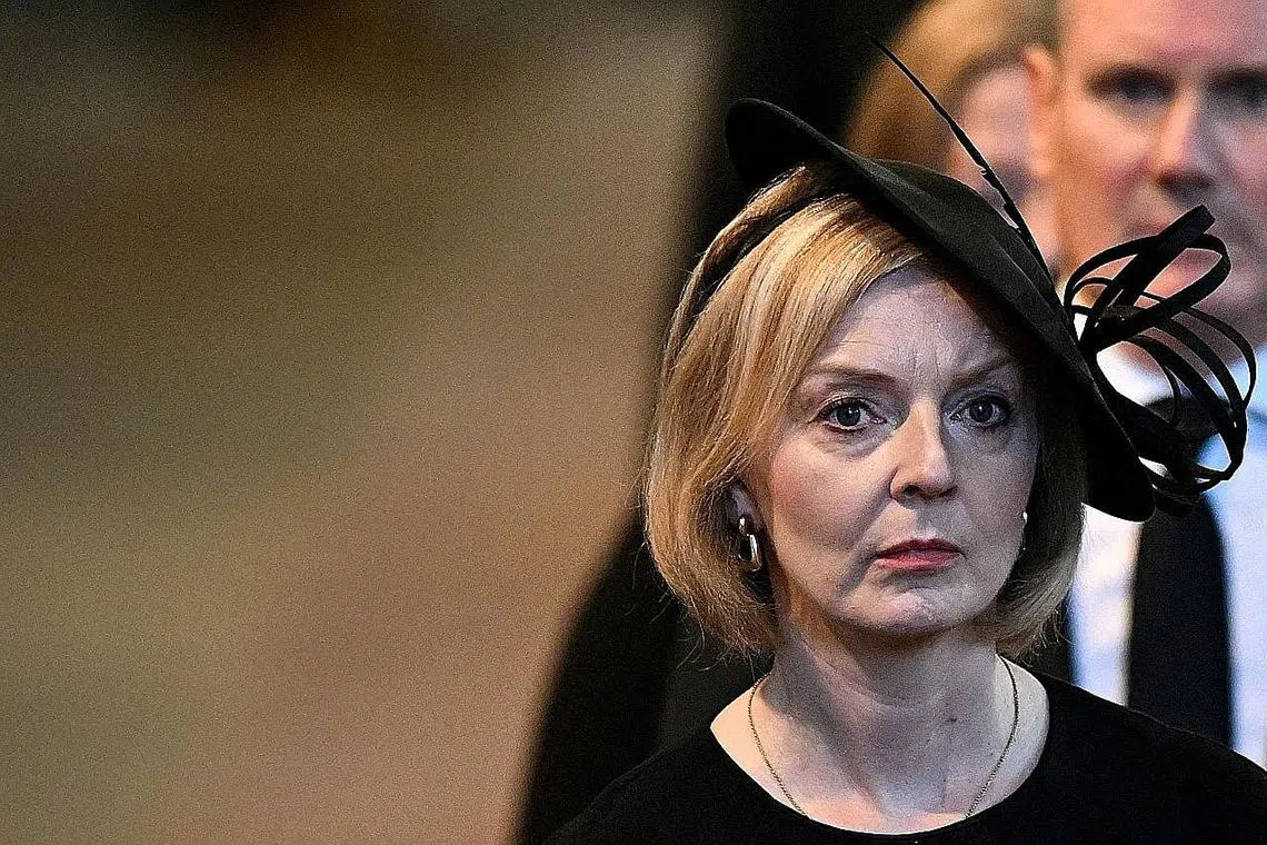 JADUAL PADAT: Perdana Menteri Britain, Cik Liz Truss, dilihat menghadiri upacara pengebumian Ratu Elizabeth II kelmarin, dan hari ini dijadualkan berucap di Perhimpunan Agung PBB. - Foto REUTERS