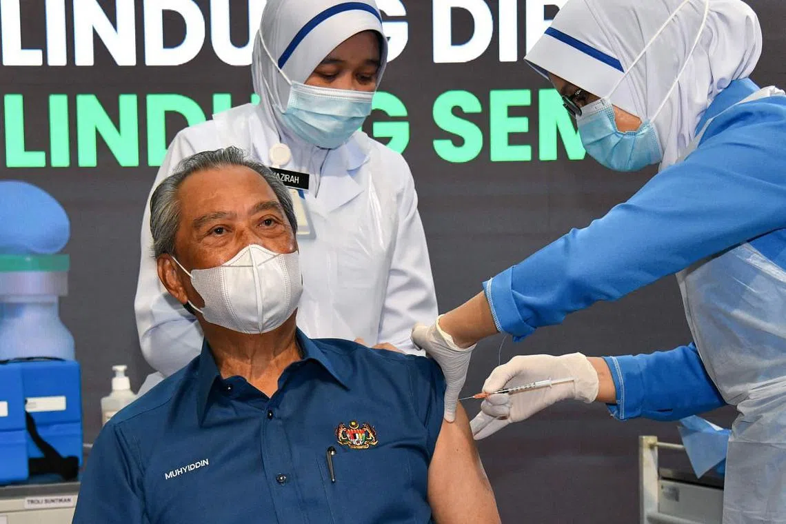 KUALA LUMPUR: Tan Sri Muhyiddin Yassin menjadi individu pertama di Malaysia yang melengkapkan dos suntikan vaksin COVID-19, semalam.