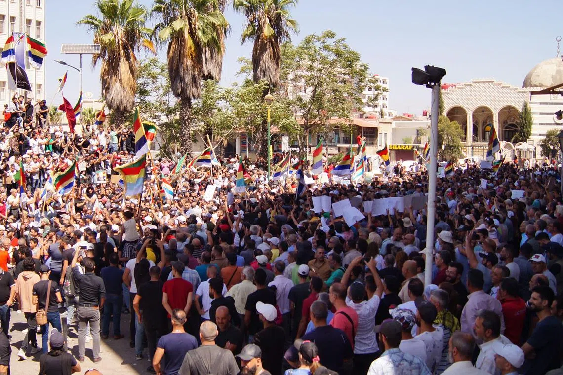 Ratusan ribu penunjuk perasaan turun ke jalan-jalan di Sweida dan di bahagian Aleppo yang dikawal pemerintah – sebagai membantah keadaan kehidupan dan ekonomi yang semakin merosot serta kos sara hidup yang tinggi.