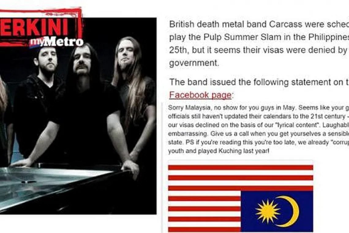 KUALA LUMPUR: Tindakan kumpulan muzik metal, Carcass, memuat naik status di Facebook yang memaparkan bendera Malaysia diterbalikkan sebagai tanda tidak puas hati, telah mencetuskan kemarahan di negara itu.