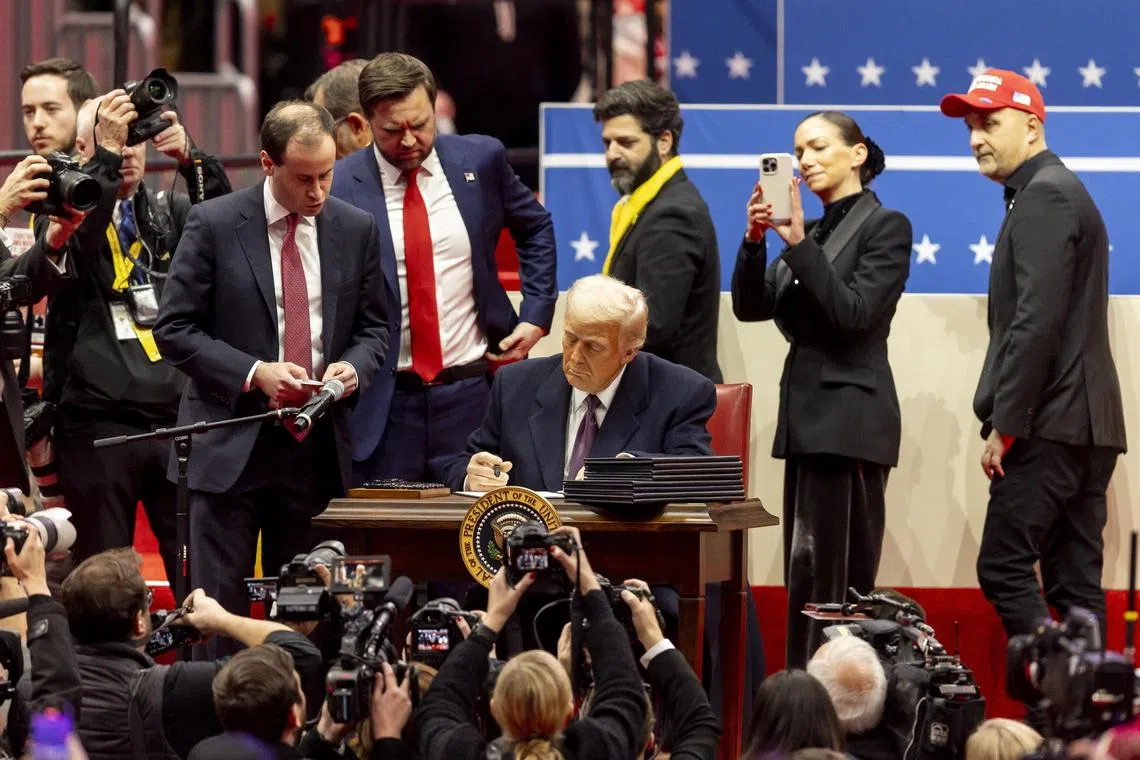 WASHINGTON: Encik Donald Trump kembali memegang tampuk pemerintahan Amerika Syarikat dengan segera menandatangani beberapa arahan eksekutif yang mencerminkan agenda baharu beliau: mengehadkan imigresen, meningkatkan pengeluaran bahan api fosil, serta menarik diri daripada perjanjian iklim antarabangsa.
