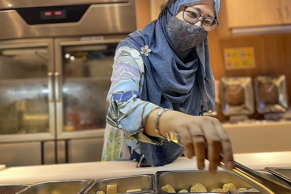 MENINGKAT SECARA BERTAHAP: Sharifah Noor Aishah (atas) berkata perniagaannya, Restoran Jinshang Yipin Halal Hotpot & BBQ Buffet di pusat beli-belah Eastpoint Mall, meningkat secara bertahap hingga 30 peratus sejak pelanggan dibenar ambil makanan bufet sendiri. -