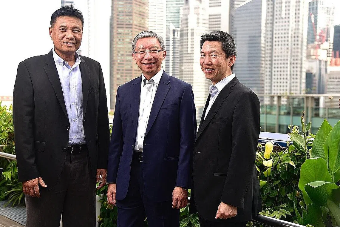 USAHA BANTU SYARIKAT TINGKAT NIAGA: Anggota Panel Pro-Perusahaan, (dari kiri) Encik Abu Bakar bin Mohd Nor (InfoFabrica Holdings Group), Encik Linus Goh (OCBC) dan Encik Adrian Chan (Lee & Lee). - Foto BH oleh DESMOND WEE -