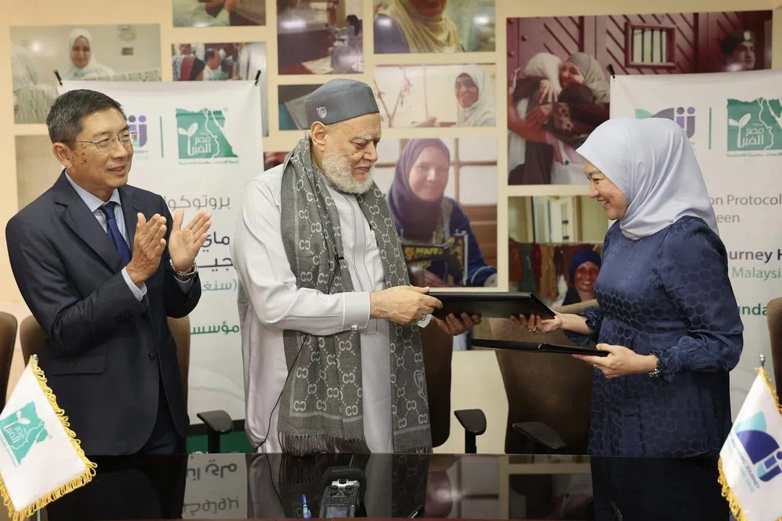 Protokol Kerjasama antara Pengerusi Lembaga Pemegang Amanah Yayasan Misr El Kheir, Dr Ali Gomaa dengan Pengerusi MIJ Hub, Cik Faraliza Zainal, ditandatangani pada 21 Julai.