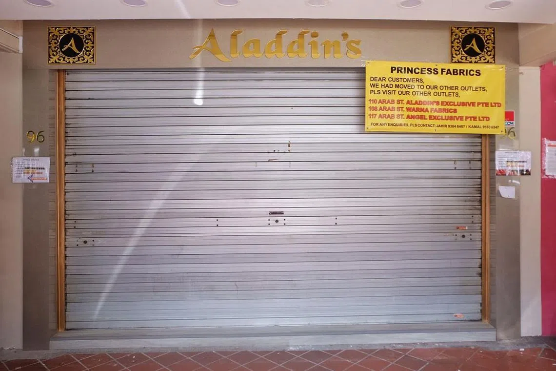 KURANGKAN BILANGAN KEDAI: Princess Fabrics menutup salah satu kedainya dan kini beroperasi daripada tiga cawangan lain di Arab Street.- Foto-foto BH oleh KHALID BABA -