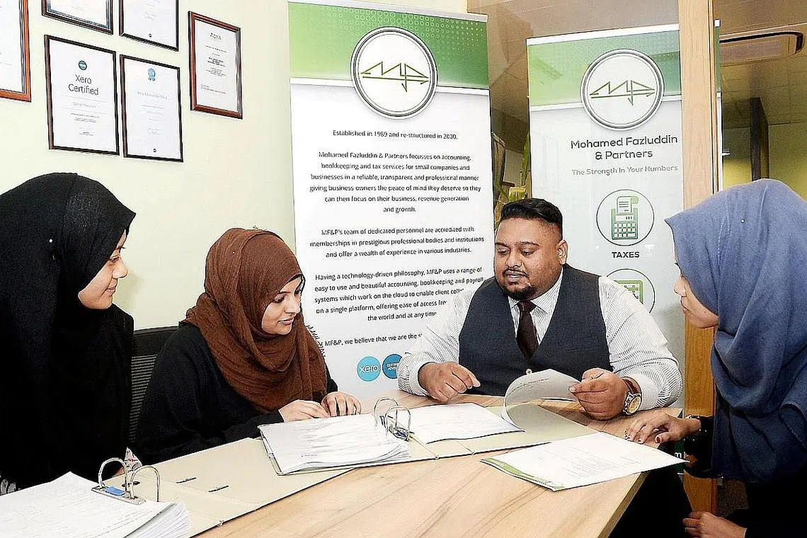 MANFAAT DIGITAL: Encik Mohamed Fazluddin Mohd Hanipah, yang bersama kakitangannya, berkata bagi perniagaan mikro seperti penjual kuih, tukang jahit dan tukang urut, terdapat sistem tempahan yang membolehkan pelanggan melihat jadual dan memasukkan masa pilihan mereka tanpa perlu menghubungi peniaga. - Foto JOHARI RAHMAT