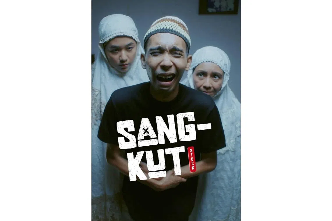 HIDUP SEBUMBUNG DENGAN MENTUA: Filem pendek berunsur komedi 'Sangkut' ini dijayakan oleh pelakon baru Hafiz Aziz, Diyanah Permata dan pelakon veteran Fauzah Khalid sebagai ibu mentua. - Foto SEVENONE FILMS -