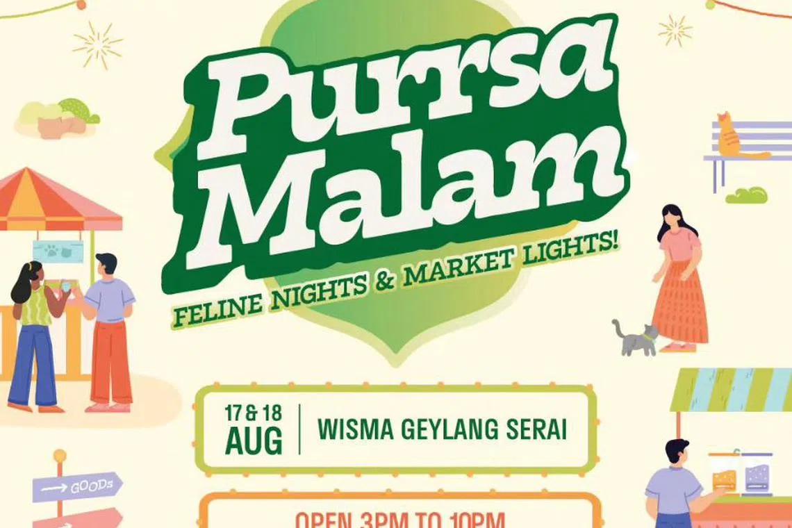Kunjungi pasar malam bertemakan kucing, Purrsa Malam, di Wisma Geylang Sertai pada 17 dan 18 Ogos.