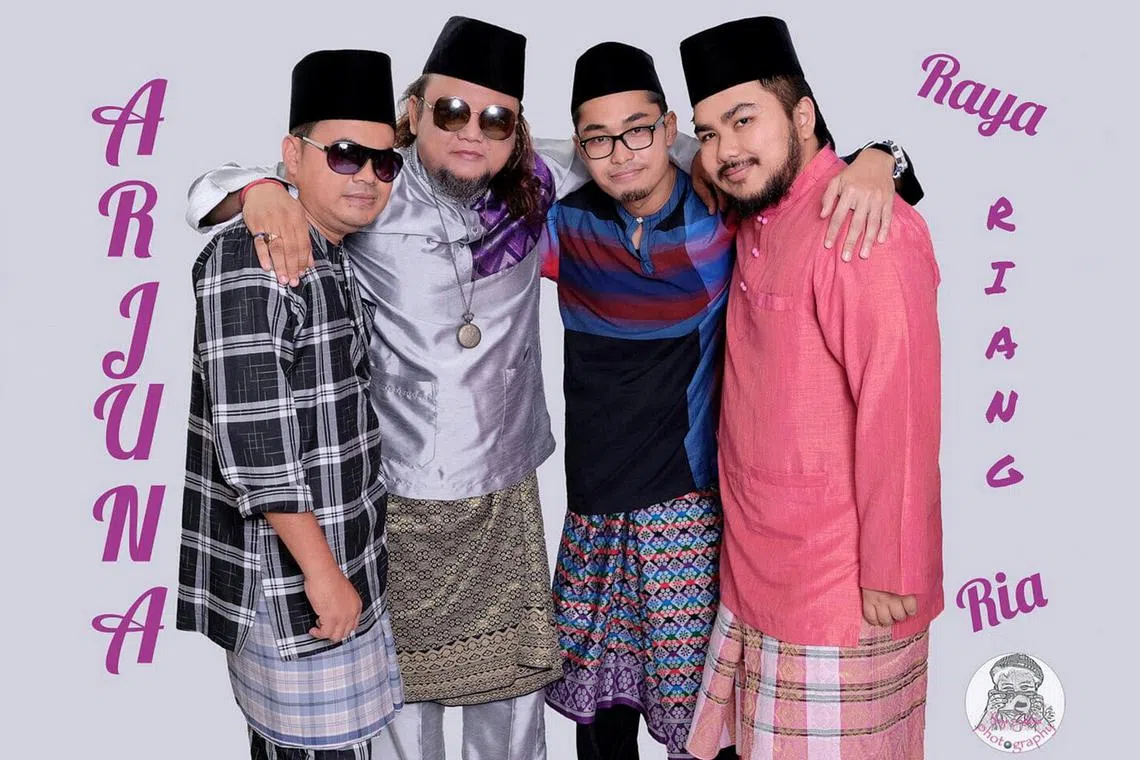 RAIKAN RAYA DENGAN LAGU BARU: Boyband Arjuna, yang terdiri daripada (dari kiri) Mas Rosli Ramli, Muhed Zainuddin, Nur Ibrahim Mohd Nor dan Md Faizal Ismail, tidak ketinggalan menghasilkan lagu ceria menjelang Lebaran, Raya Riang Ria. - Foto ihsan ARJUNA -