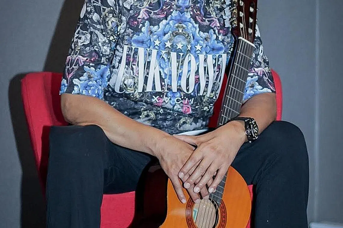 MUZIK TIADA JALAN PINTAS: Hamid Ahmad (kiri), pemain bass kumpulan Black Dog Bone yang bakal menemu para peminat di sesi '90 minit bersama...'. - Foto BM oleh NUR DIYANA TAHA -