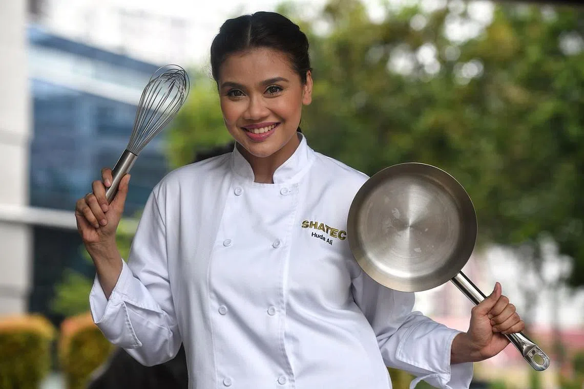 USAH terperanjat jika anda ternampak Huda Ali mengenakan pakaian seragam putih ala cef.