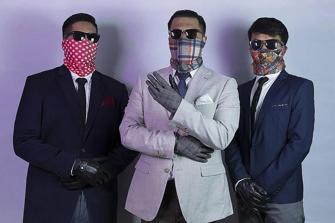 PENILAIAN BUKAN LAGI UKURAN: Apabila kumpulan The Sallys yang terdiri daripada (dari kiri) Wantanabe, Abi Dhia dan Roze muncul dengan imej baru menutupi wajah dengan kaca mata hitam dan pelitup tahun lalu sempena 'single' Dhia, mereka hanya mahu berkarya secara ikhlas dan gembira mendapat kelompok pendengar baru yang tidak terdedah pada lagu band mereka sebelum ini. - Foto THE SALLYS -
