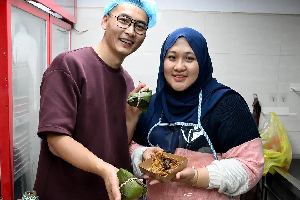 Pengasas The Han’s Dumplings, Cik Nur Fazlin Mohd Noor, 38 tahun, bersama suaminya, Encik Iman Shen, 40 tahun, memulakan perniagaan kuih cang halal ini pada 2021 selepas beliau mengidamkan kuih tersebut semasa hamil.