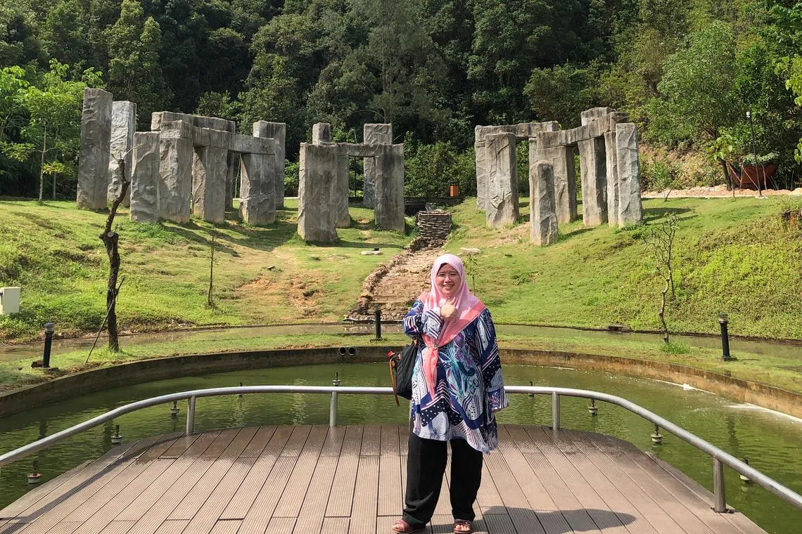 Selesai memberi rusa dan ikan makan, saya ternampak struktur batu-batan persis Stonehenge (tarikan pelancong di Salisbury, United Kingdom) di Taman Rusa. Bolehlah bergambar di situ dengan tempias air daripada air terjun mini berhampiran terasa. Air terjun itu memang penawar di kala cuaca panas terik.