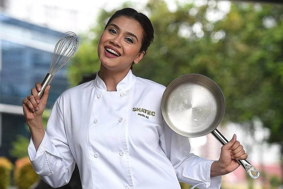 HOS dan pelakon Huda Ali, 34 tahun, turut kembali ke sekolah untuk mengikuti pengajian diploma sepenuh masa dalam Seni Kulinari di Pusat Pendidikan Hotel dan Pelancongan Singapura (Shatec).