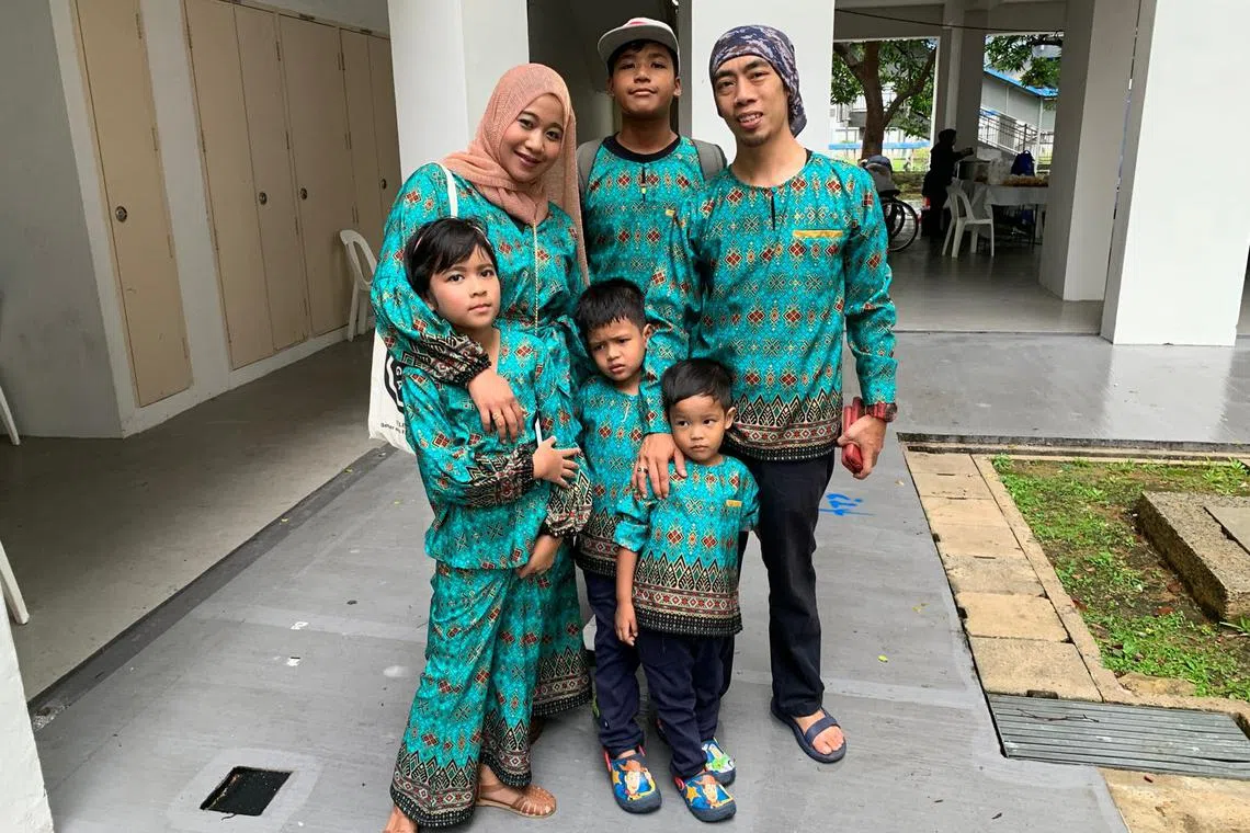 Cik Nooridah Ahmad bersama suami, Encik Mohamad Tarmizi Azman (kanan), bersama empat anak saudara mereka, (dari depan, kiri) Nur Ashlynn D’arwyn, 13 tahun; Muhammad Ashryee D’arwyn, 10 tahun; dan Muhammad Ashrull D’arwyn, lapan tahun; dan Muhammad Ashraff D’arwyn (barisan kedua, tengah), 18 tahun, yang dilayan dan disayangi bagai anak sendiri. - Foto ihsan NOORIDAH AHMAD