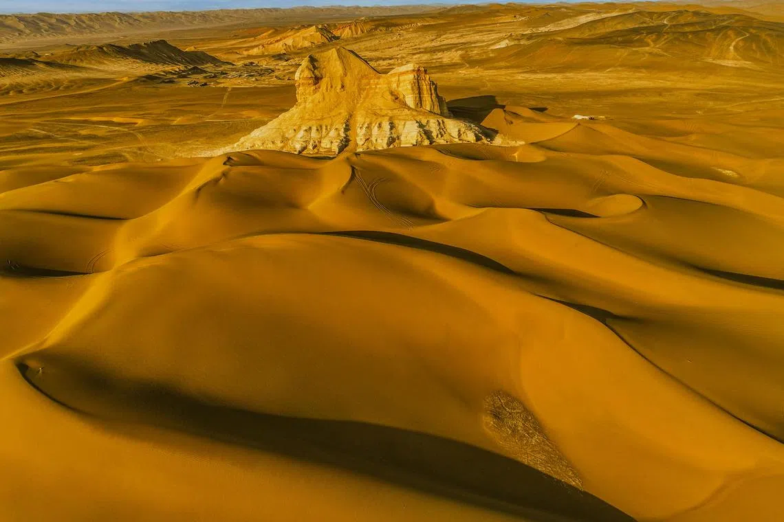 URUMQI: Kuasa penyembuhan matahari dan pasir telah mengubah padang pasir yang luas di wilayah berautonomi Xinjiang Uighur menjadi destinasi pelancongan yang popular, memenuhi keperluan mereka yang percaya akan penawar semula jadi dan juga menggiatkan semula industri pelancongan tempatan.