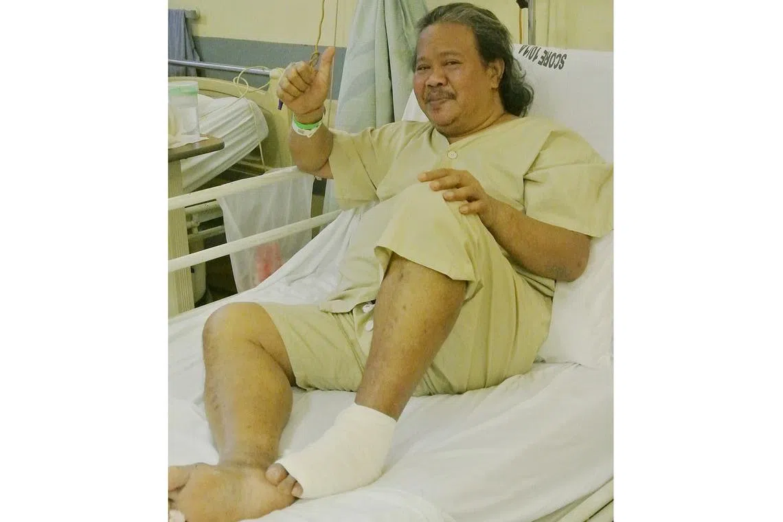 MENDAPAT RAWATAN: Pelawak dan penghibur Alias Kadir sedang dirawat di Hospital Universiti Nasional (NUH) kerana dua jari di kaki kirinya perlu dipotong akibat penyakit kencing manis. - Foto ihsan ALIAS KADIR -