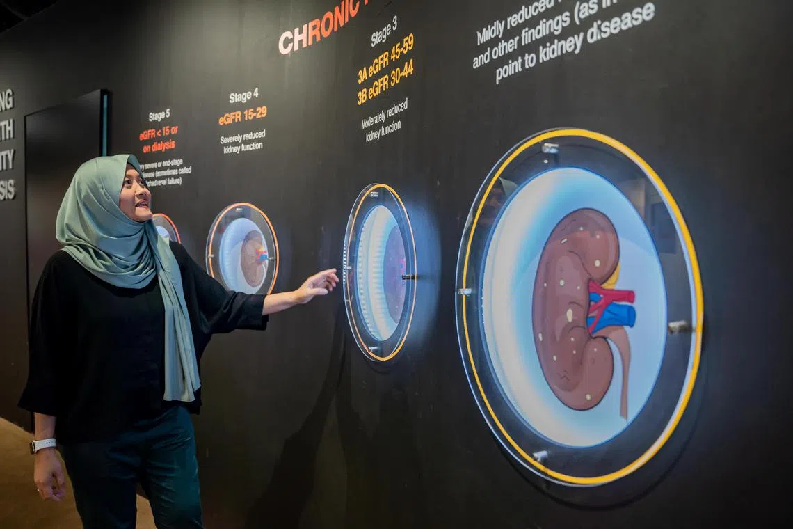 KONGSI ILMU: Cik Norazlina Wagiman dari Yayasan Buah Pinggang Kebangsaan (NKF) mendidik orang ramai tentang kepentingan menjaga ginjal. Beliau menerangkan tahap keadaan buah pinggang manusia dari satu peringkat ke satu peringkat sebelum ia dianggap sebagai penyakit kronik yang memerlukan rawatan dialisis. - Foto BH oleh NUR DIYANA TAHA