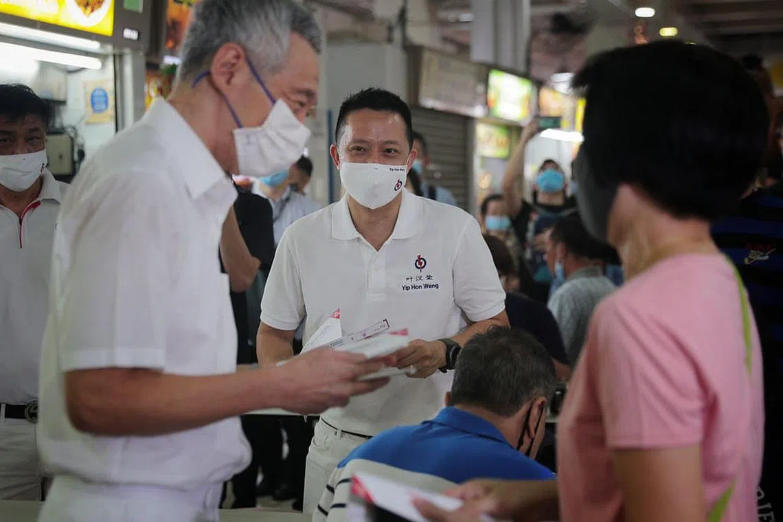 Perdana Menteri Lee Hsien Loong hadir bertemu penduduk dan pegerai di pusat penjaja di Blok 628 Ang Mo Kio Avenue 4 bersama calon PAP bagi SMC Yio Chu Kang, Encik Yip Hon Weng, seawal sekitar 7.30 pagi.