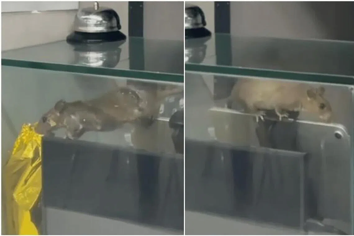 Ini selepas seekor tikus dirakam bertenggek di atas sebuah tablet di kaunter bayaran sebuah gerai di situ.