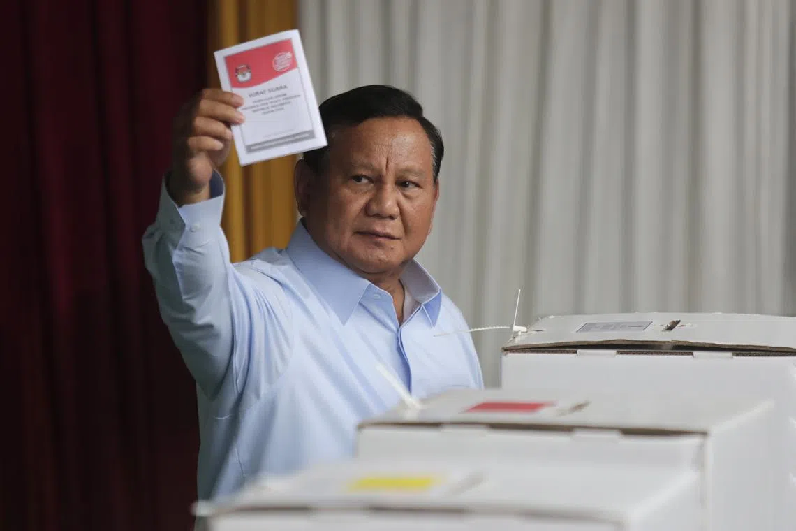 Dalam beberapa kiraan pantas menyusuli Pilihan Raya Presiden Indonesia pada 14 Februari, hasilnya menunjukkan beliau mendahului dengan lebih 58 peratus undian berbanding dua pesaingnya – mantan gabenor Jakarta, Encik Anies Baswedan, dan mantan gabenor Jawa Tengah, Encik Ganjar Pranowo, masing-masing meraih kira-kira 25 peratus dan 17 peratus.