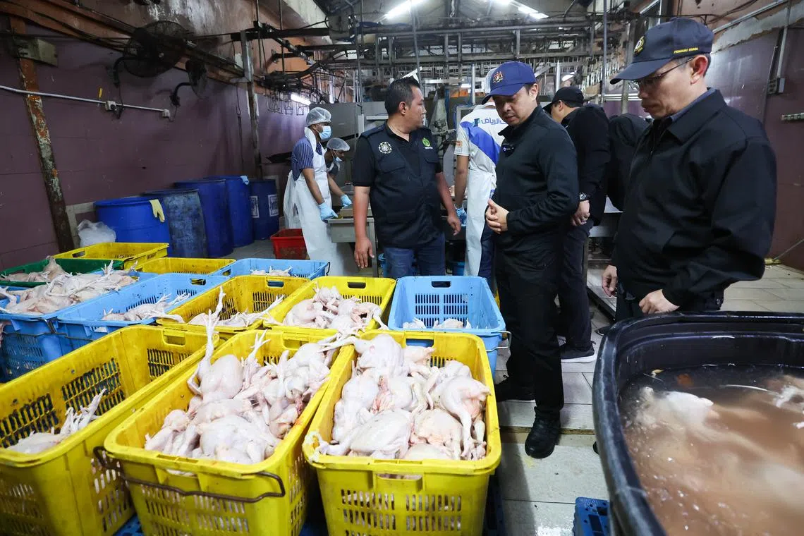 Kementerian Perdagangan Dalam Negeri dan Kos Sara Hidup (KPDN) Selangor bersama Jabatan Agama Islam Selangor (Jais) telah menyerbu sebuah rumah penyembelihan ayam di Puchong atas pelbagai kesalahan termasuk pelanggaran manual prosedur Pensijilan Halal Malaysia pada 29 Oktober. - Foto BERNAMA