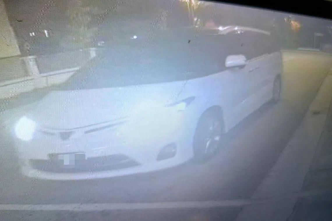 Turut kelihatan, sebuah motosikal jenama Y15ZR berwarna biru yang dipercayai milik Ahmad Khuzaimi yang telah dilarikan oleh seorang lelaki dari pekarangan rumah dan diekori rapat oleh kereta berwarna putih.