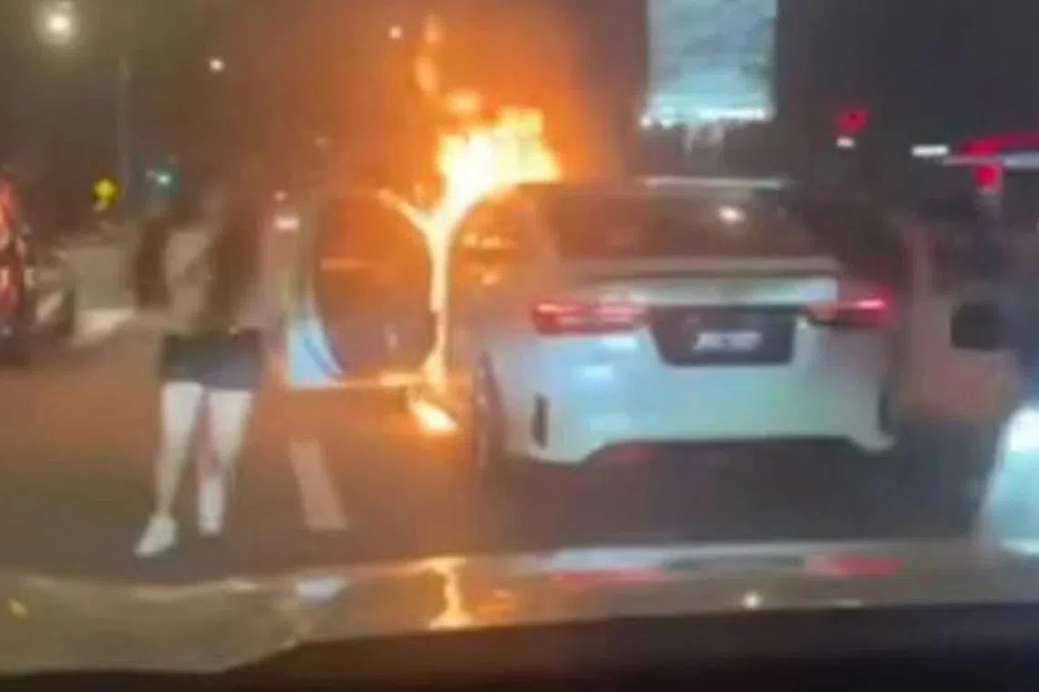 JOHOR BAHRU: Empat individu, termasuk pemandu sebuah Toyota Vios, terselamat daripada maut selepas sempat keluar melarikan diri dari kenderaan mereka yang disimbah petrol lalu terbakar di Jalan Tebrau, Johor Bahru, pada 2 Februari malam.