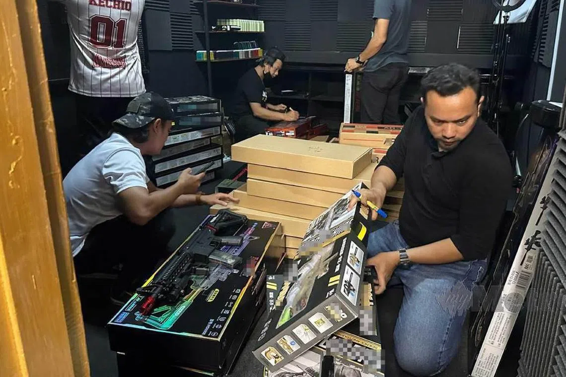 Serbuan dilakukan Biro Jenayah Hidupan Liar/Perisikan Siasatan Khas, Jabatan Keselamatan Dalam Negeri dan Ketenteraman Awam Bukit Aman pada 7 malam 5 Januari dan merampas 155 senjata tiruan pelbagai jenama yang disimpan dalam bilik di tingkat atas premis.
